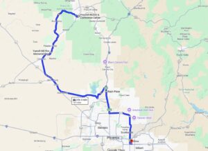 After leaving the Resort, we will travel through Skull Valley, Yarnell, through Wickenburg, Anthem then into Mesa. We will have a refueling stop in Wickenburg. If your motorcycle is unable to make the mileage between refueling stops, please advise our Road Captain at check-in prior to departure. Plan on approximate 4 and a half hours for this route.